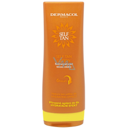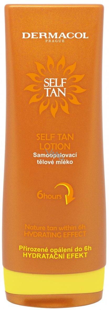 Dermacol Self Tan mleczko brązujące nawilża, zmiękcza i jednocześnie wygładza skórę. Nadaje skórze naturalną opaleniznę. Lekka formuła z Panthenolem łatwo się rozprowadza i jednocześnie koi oraz regeneruje skórę. Dermacol mleczko brązujące jest odpowiednie do stosowania przez cały rok. Nawet środki z wysokim SPF nie zapewniają 100% ochrony przed promieniowaniem UV. Nie przebywaj zbyt długo na słońcu, nawet gdy używasz ochrony przeciwsłonecznej; nadmierna ekspozycja na słońce stanowi poważne zagrożenie dla zdrowia. Unikaj szczególnie działania bezpośredniego słońca w godzinach (11-15). Chroń się przed promieniowaniem słonecznym odzieżą, nakryciem głowy i okularami przeciwsłonecznymi.