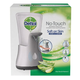 Dettol bezdotykowy dozownik mydła automatycznie rejestruje Twoje ręce i uwalnia potrzebną dawkę mydła, które usuwa bakterie i pozostawia Twoją skórę delikatną. Bakterie nie mają w związku z tym kontaktu z automatycznym dozownikiem mydła, co sprzyja zdrowemu domowi. Dettol bezdotykowy dozownik mydła jest idealny do kuchni i łazienek. System mycia rąk Dettol zawiera bezdotykowy dozownik, jeden zapasowy wkład i baterie.
