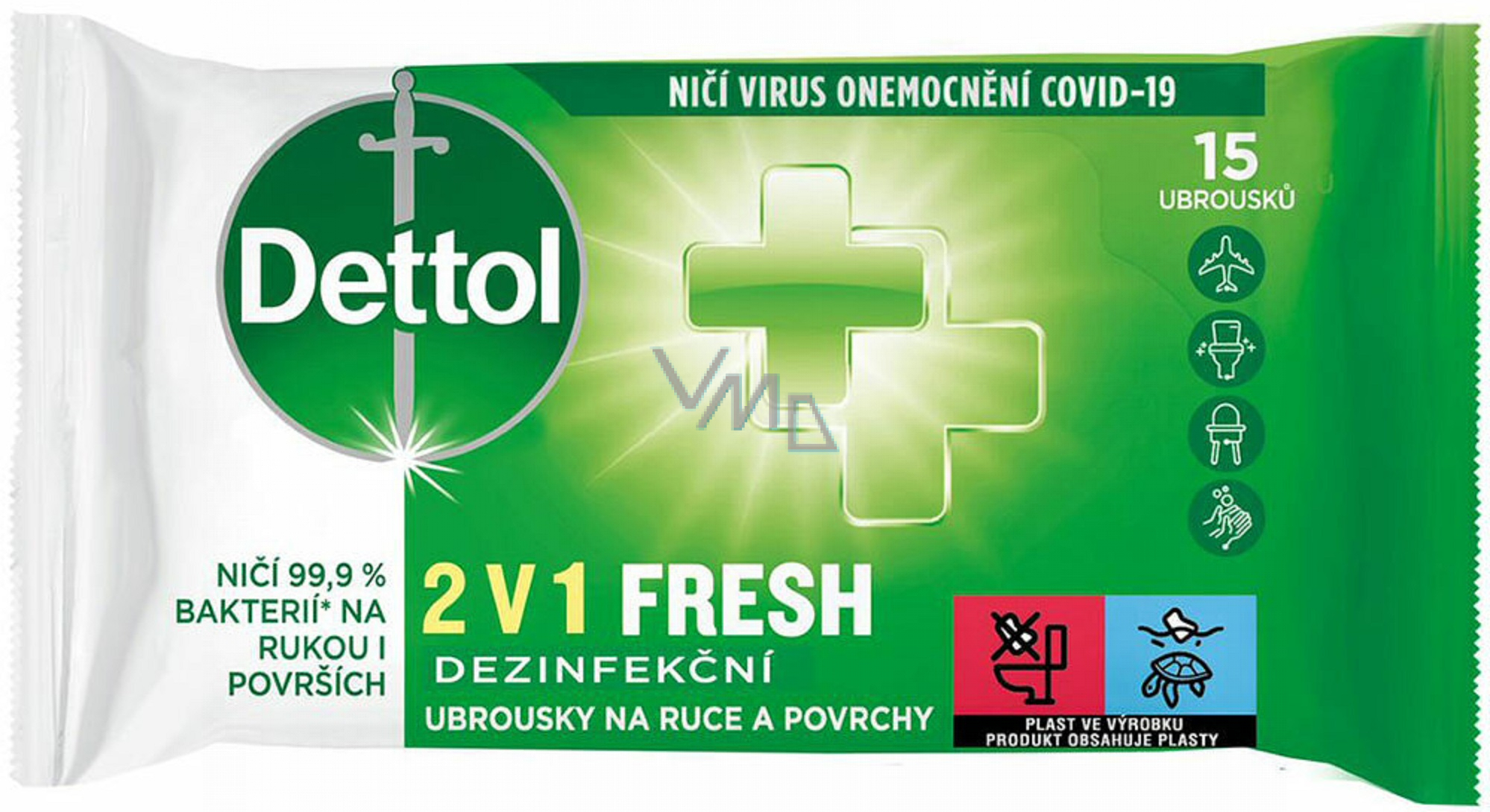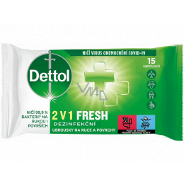 Dettol Fresh 2v1 Dezinfekční ubrousky na ruce a povrchy 15 kusů