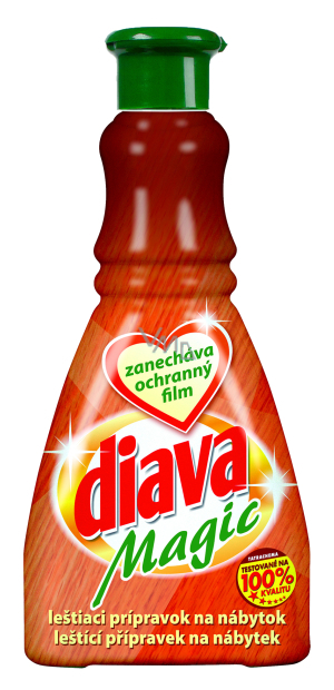 Diava magic je jemná čisticí a lešticí emulze na nábytek. Zanechává ochranný film, příjemnou vůni a přirozený vzhled.