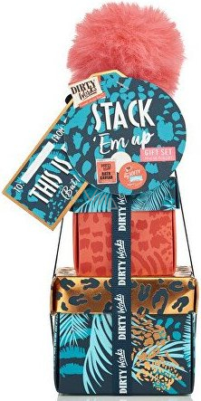 Dirty Works Stack Em Up šumivá bomba do koupele 30 g + sůl do koupele 25 g + tělové máslo 50 g + dárková krabička 3 kusy, kosmetická sada