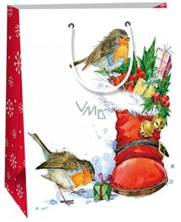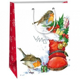 Ditipo Dárková papírová taška 18 x 10 x 22,7 cm bílá bota s dárky ptáčci C