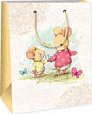 Ditipo Dárková papírová taška střední bílá dvě myšky 18 x 10 x 22,7 cm DC