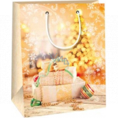 Ditipo Dárková papírová taška 18 x 10 x 22,7 cm Vánoční zlatá - dárky, svítící stromeček