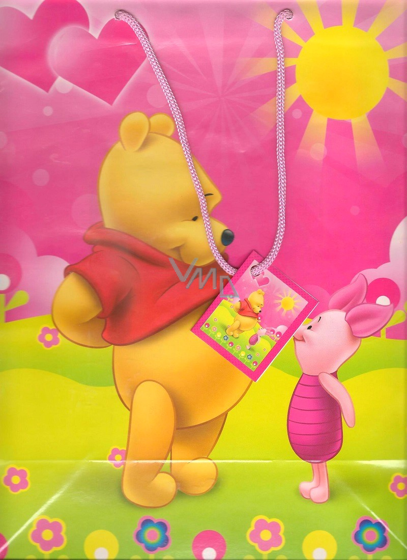 Ditipo Dárková papírová taška dětská L Disney Medvídek Pú, prasátko, sluníčko 32,5 x 13,5 x 26 cm 2902 002