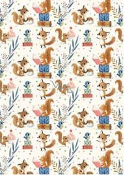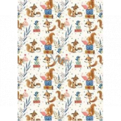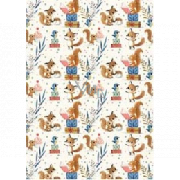 Ditipo Dárkový balicí papír 70 x 100 cm Bílý lišky, veverky a modří ptáčci 2 archy