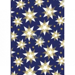 Ditipo Dárkový balicí papír 70 x 200 cm Vánoční modrý bílo-zlaté hvězdy