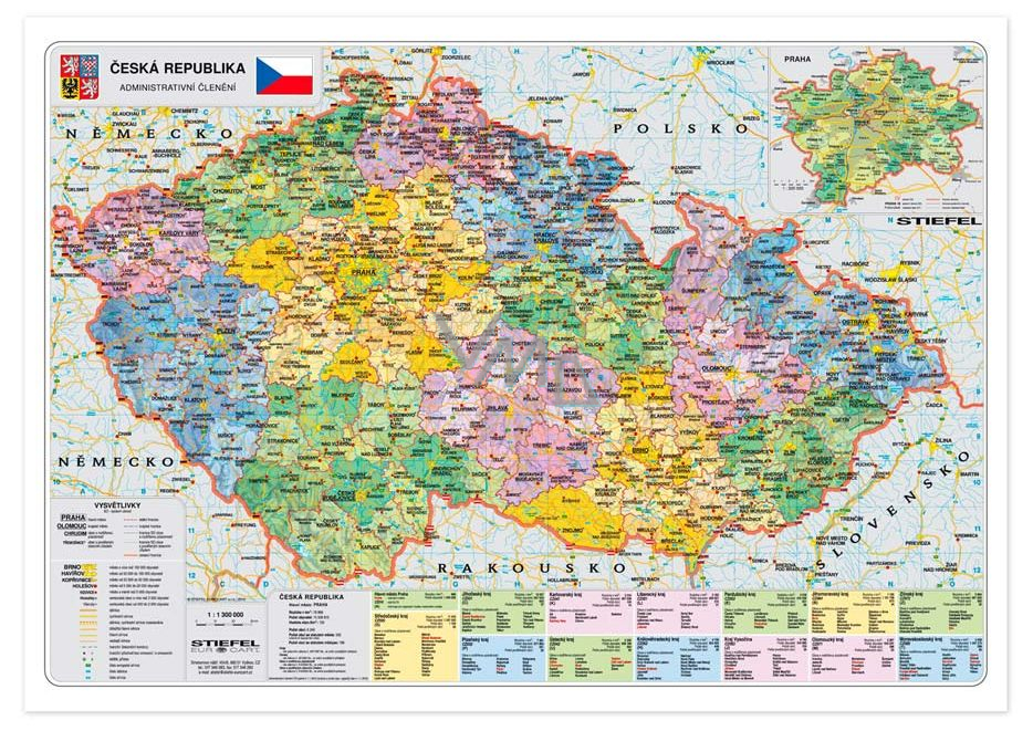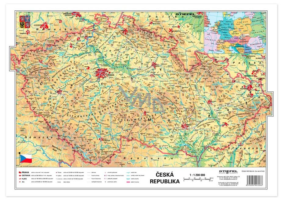 Na mapě je také politická mapa střední Evropy. Legenda je rozšířená o údaje o zeměpisné poloze, rozloze a o významná nej... ČR.