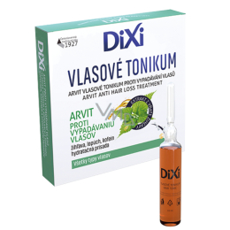 Vlasové tonikum Dixi Arvit bojuje proti vypadávání vlasů. Obsah účinných látek – extrakty z kopřivy a kořene lopuchu, kofein, provitamín B5, vitamín F a hydratační přísada – se spolu s aplikací pomocí masáže postarají o zdravou pokožku hlavy, posílení vlasů a zvýšený přísun živin do vlasových folikulů. Přírodní složky v toniku Dixi Arvit proti vypadávání vlasů se postarají o komplexní péči, abyste se mohli pyšnit krásnými a hustými vlasy.