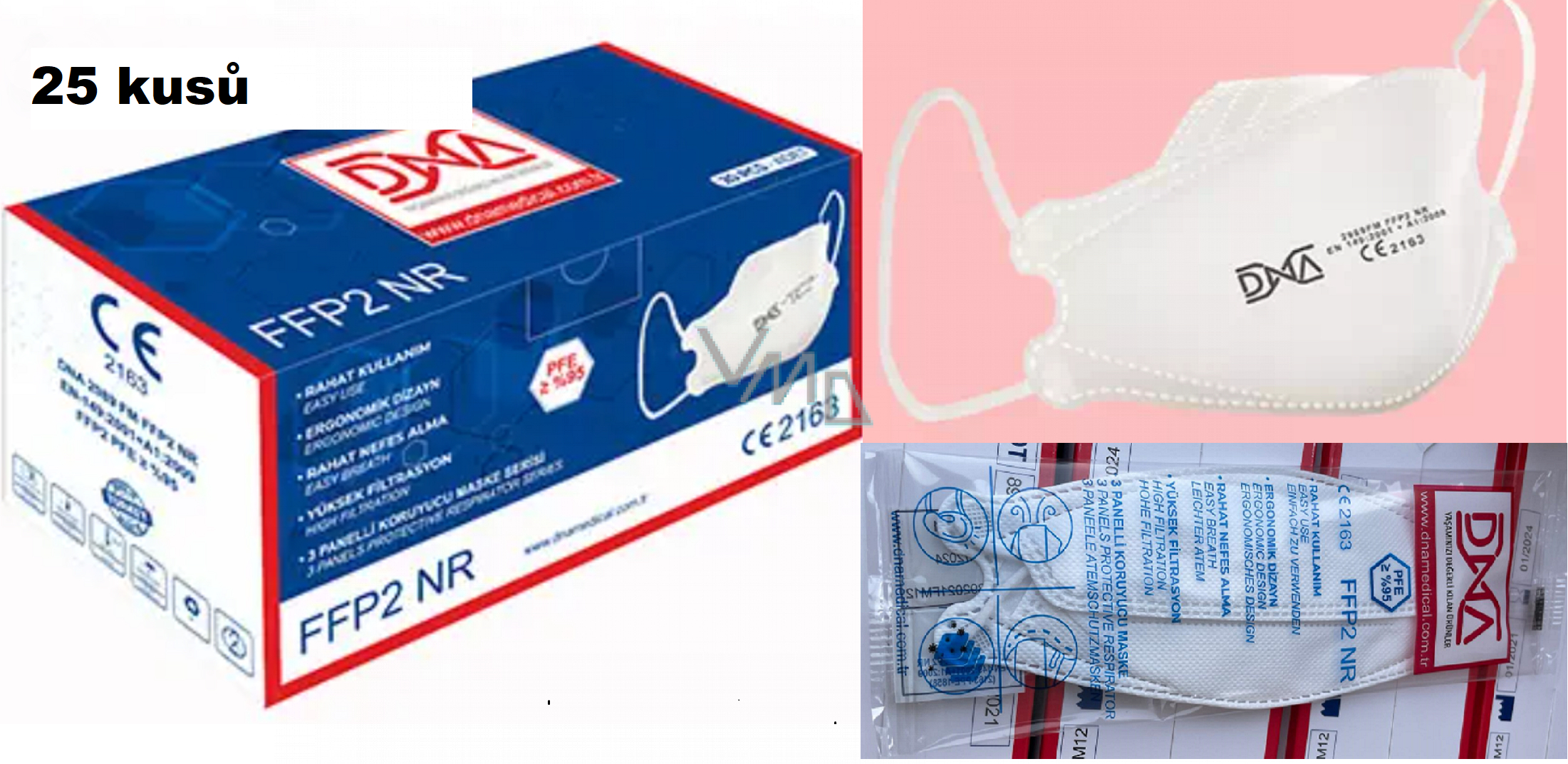 Respirator DNA ochronny 4-warstwowy FFP2 maska na twarz 25 sztuk