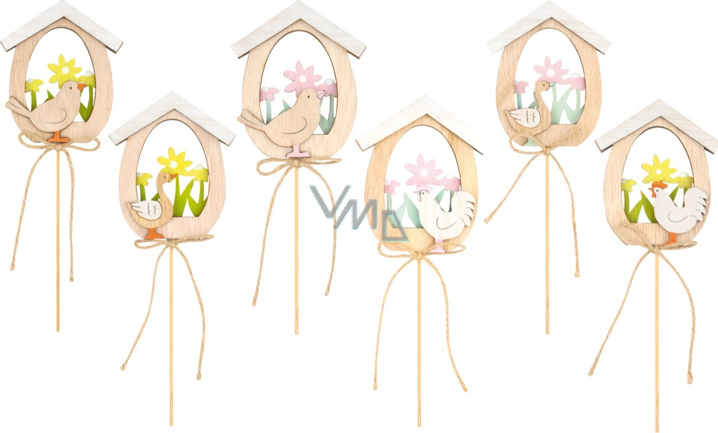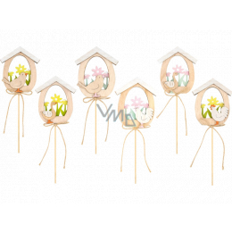 Domek dřevěný se zvířátkem a kytkami 9 cm + špejle, různé barvy 1 kus