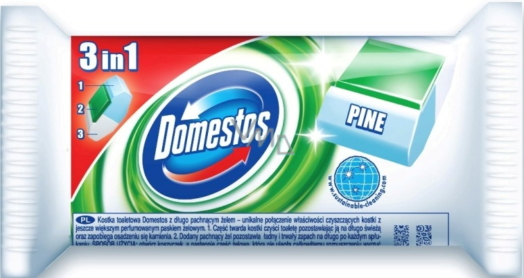 Domestos 3v1 tuhé WC bloky jsou složeny ze tří speciálních vrstev a kombinují tak tři účinky: