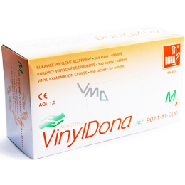 Dona Vinyldona rukavice vinylové nepudrované bezprašné, velikost M 200 kusů v krabici