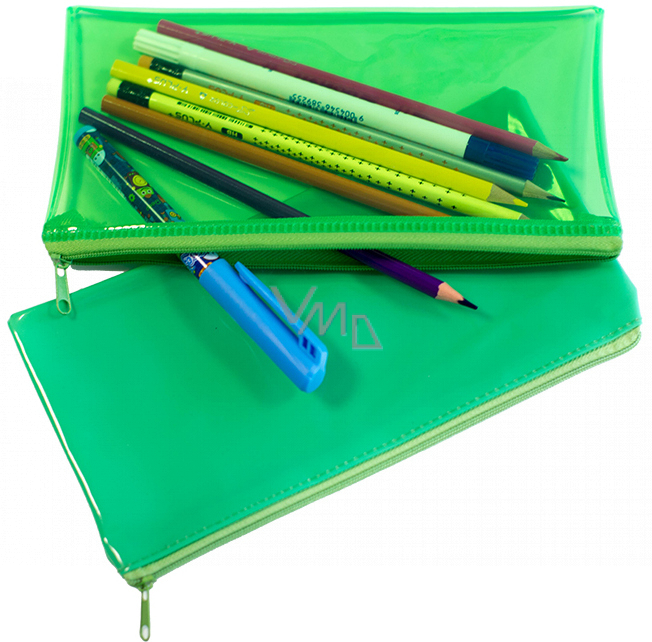 Školní pouzdro na tužky se zipem, mix barev, vyrobeno z PVC.