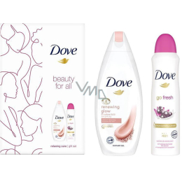 Dove Renewing Glow sprchový gel s obsahem růžového jílu oživuje mdlou a unavenou pokožku. Cenné složení intenzivně pokožku čistí a důkladně o ni pečuje. Díky svým zklidňujícím účinkům je vhodný pro suchou a citlivou pleť.