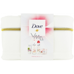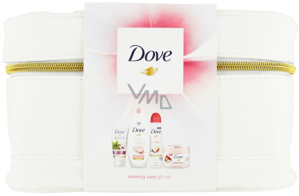 Vánoční dárková kazeta DOVE Relaxing care je nádherným dárkem pro každou ženu, která ráda hýčká svou pokožku. Obsahuje přípravky pro každodenní péči, a to sprchový gel, tělový peeling, krém na ruce, antiperspirant a kosmetickou tašku. Sprchový gel DOVE Renewing Glow Pink Clay o objemu 250 ml šetrně pokožku myje a zbavuje nečistot. Obsahuje čtvrtinu hydratačního krému, který udržuje vlhkost pokožky a zanechává ji vláčnou, jemnou a zklidněnou. Dále je jeho složení obohaceno o růžový jíl, který oživuje mdlou a unavenou pokožku a navrací jí zářivost. Přípravek neobsahuje parabeny, sulfáty a ftaláty a je vhodný i pro citlivou a suchou pokožku.