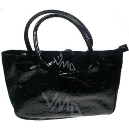 Dove Kabelka lesklá kůže, s ozdobným knoflíkem, černá 28 x 19 x 9 cm