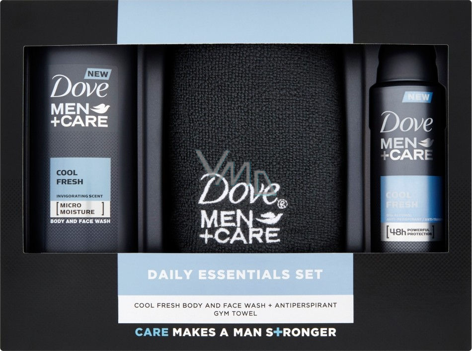 Jemná péče pro silné muže. Řada pro muže Cool Fresh přináší ledově chladné ochlazení a zároveň pečuje o mužskou pokožku. Díky jedinečné technologii Micromoisture nejen účinně myje a osvěžuje, ale také pomáhá udržovat správný stupeň hydratace pokožky. Součástí balíčku je nejen sprchový gel a antiperspirant sprej, ale i praktický rychleschnoucí ručník Dove.