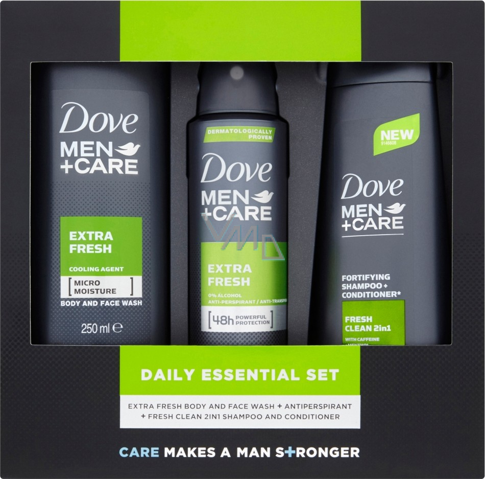 Řada pro muže Extra Fresh přináší pocit jiskřivé svěžesti všem dobrodruhům, kteří chtějí zároveň pečovat o stav své pleti. Díky jedinečné technologii Micromoisture nejen účinně myje a osvěžuje, ale také pomáhá udržovat správný stupeň hydratace pokožky. Součástí balíčku je sprchový gel, antiperspirant sprej a 2v1 šampon a kondicionér, společně zabalené v elegantní dárkové krabičce.