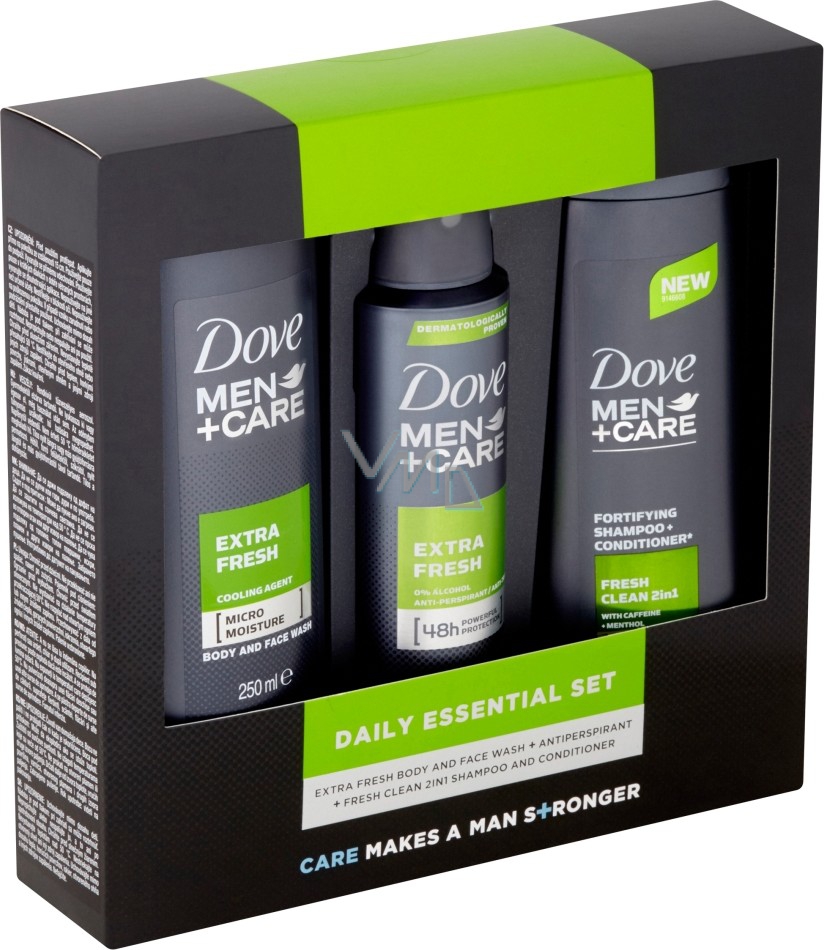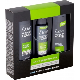 Dove Men + Care Extra Fresh sprchový gel 250 ml + antiperspirant sprej 150 ml + 2v1 šampon a kondicionér 250 ml, kosmetická sada pro muže