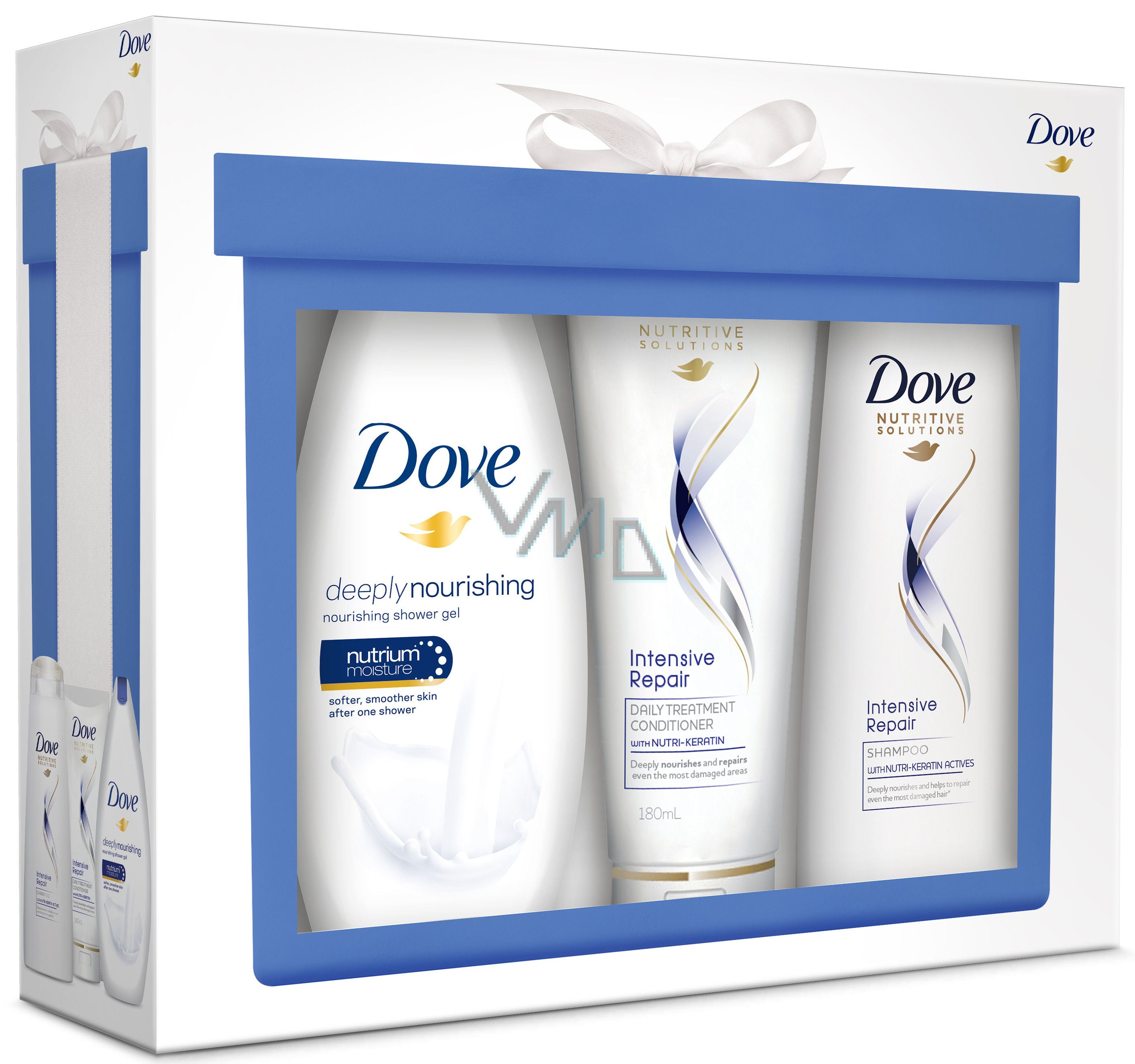 Dove Nourishing Deeply sprchový gel 250 ml + Intensive Repair šampon 250 ml + kondicioner 180 ml, kosmetická sada
