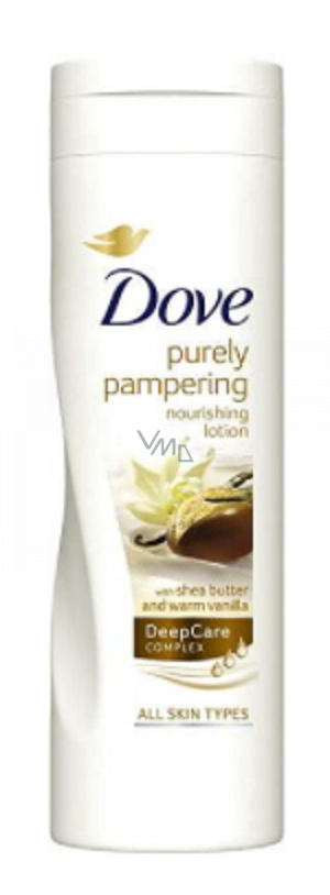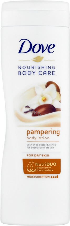 Dove Purely Pampering Masło shea i wanilia mleko do ciała łączy odżywczy krem z masłem shea i zapewnia skórze głębokie nawilżenie i pielęgnację. Skład jest wzbogacony o unikalny składnik DeepCare Complex, który zawiera naturalnie odżywcze substancje i olejki eteryczne. Mleko do ciała Dove Purely Pampering Masło shea i wanilia odżywia i zmiękcza skórę a jego kremowa konsystencja przynosi uczucie równowagi, podczas gdy ciepłe nuty wanilii pozwalają czuć się przyjemnie i harmonijnie przez cały dzień.