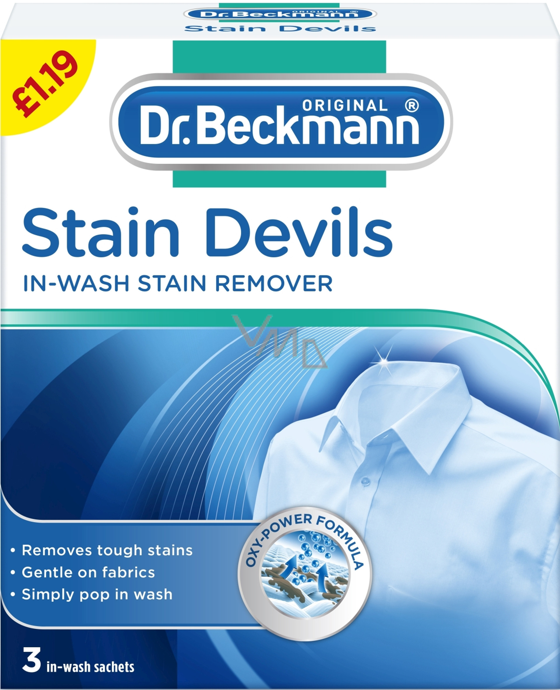 Dr. Beckham Stain Devils in Wash jest odpowiedni do usuwania uporczywych plam. Jeśli potrzebujesz skutecznego odplamiacza, to sięgnij po pewność. Odpowiedni do prania w pralce, kolorowych tkanin. Nie używaj na wełnę i jedwab.