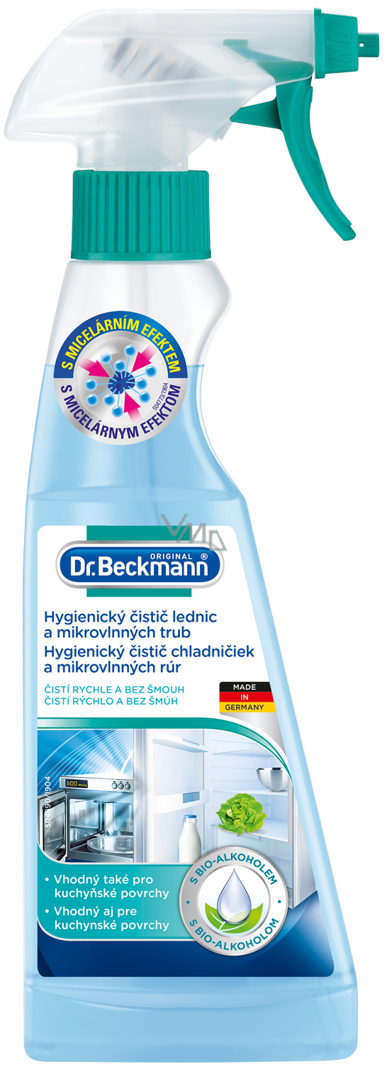 Dr. Beckmann higieniczny środek czyszczący do lodówek zapewnia higieniczną i dokładną czystość w lodówkach, mikrofalówkach, torbach chłodzących, spiżarniach itp., gdzie przechowywane lub przetwarzane są artykuły spożywcze. Higieniczna czystość jest tutaj absolutnie niezbędna. Zarazki i bakterie mogą bowiem rozprzestrzeniać się nawet w zimnie.