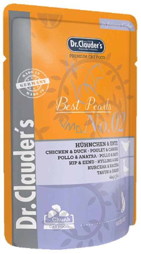 Dr. Clauders - krmivo pro kočky. Kousky masa ve výborné omáčce - kuře a kachna.