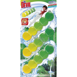 Dr. Devil Wc BiColor 5Ball pachnie, czyści i zapobiega osadzaniu się kamienia wodnego. Dr. Devil Wc BiColor 5Ball to zawieszany blok WC odpowiedni do każdego typu i kształtu toalety, blok WC obficie pieni się, świeżo i intensywnie pachnie, skutecznie czyści i zapobiega osadzaniu się kamienia wodnego.