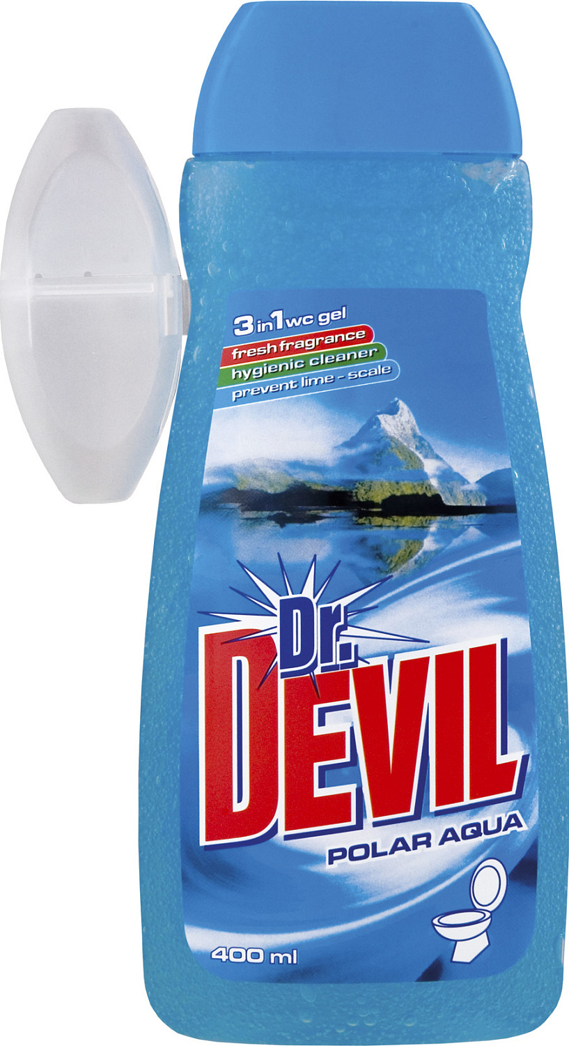 Utrzymanie przyjemnego zapachu w toalecie może być czasami trudne. Oferujemy zatem żele WC Dr. Devil. Praktyczny plastikowy pojemnik przymocowuje się do krawędzi muszli i łatwo napełnia specjalnym żelem WC Dr. Devil. Świeżo pachnie, zapobiega osadzaniu się kamienia wodnego. Wybierz spośród czterech przyjemnych zapachów żeli WC Dr. Devil. Ich działanie pozytywnie Cię zaskoczy.