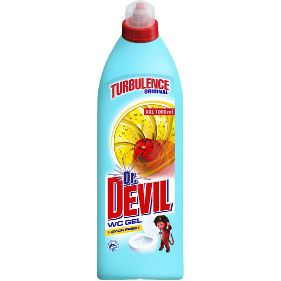 Dr. DEVIL WC Gel Turbulence Lemon Fresh jest skutecznym środkiem czyszczącym przeznaczonym do dokładnej higieny toalet. Zapewnia świeży cytrynowy zapach, który neutralizuje nieprzyjemne zapachy.