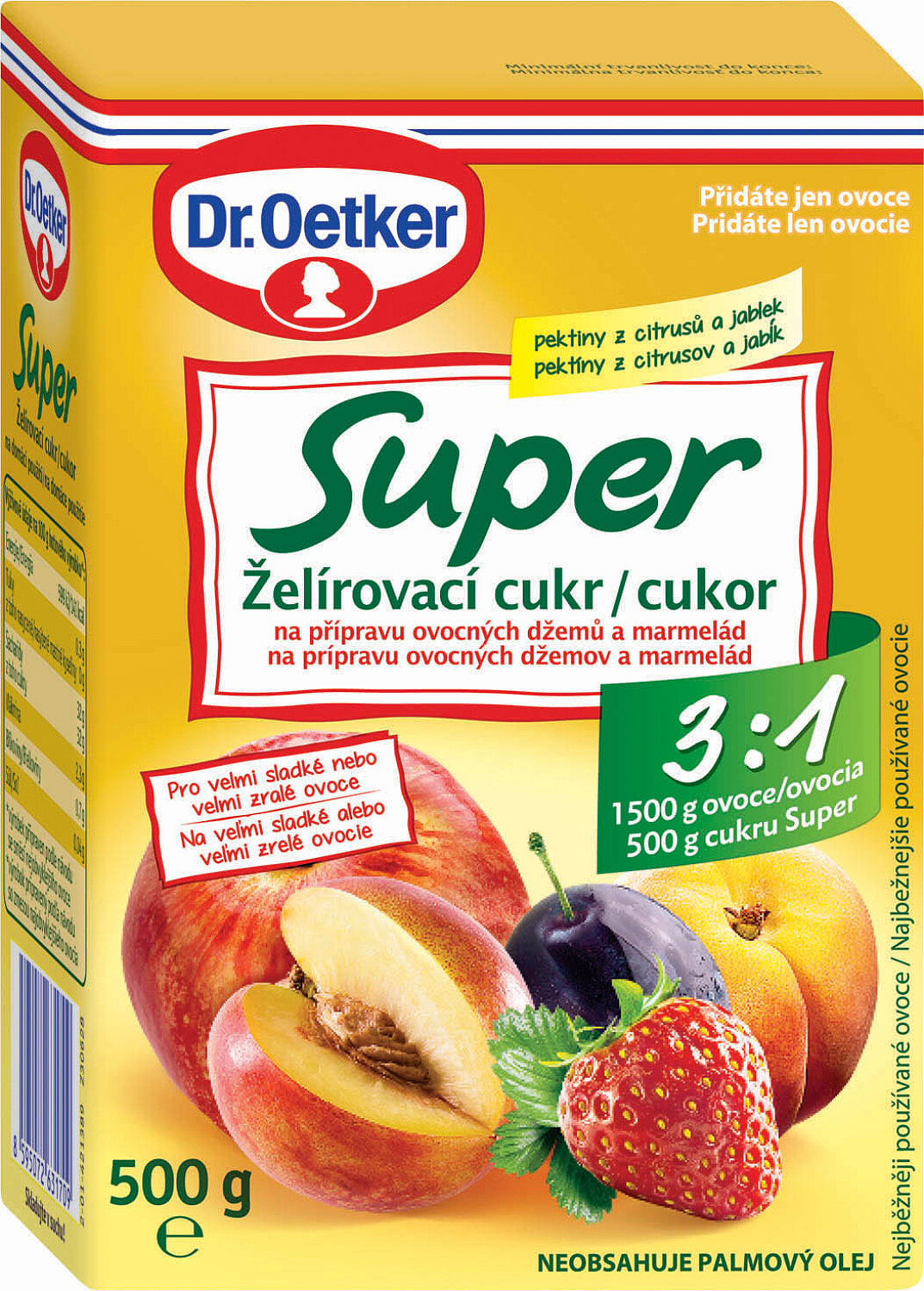 Z żelującym cukrem Super 3:1 Twoje gotowe dżemy będą zawierały 75% owoców! Żelujący cukier z pektynami z owoców cytrusowych. Świetny do przygotowania owocowych dżemów i marmolad. Dodajesz tylko owoce. Do bardzo słodkich lub bardzo dojrzałych owoców.
