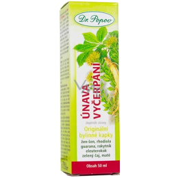 Oryginalna ziołowa tinktura Dr. Popova Odnowa wyczerpania zawiera 8 doskonałychpobudzających zioł, które pomogą wamzłagodzić uczucie zmęczenia, wyczerpania lub przepracowania.Dodająnowej siły do życia. Wspierająpsychiczną i fizyczną witalność, wasząsprawność, koncentrację iwydajność. Czerpcie nowąenergię, siłę i mnóstwo dobrego nastroju.