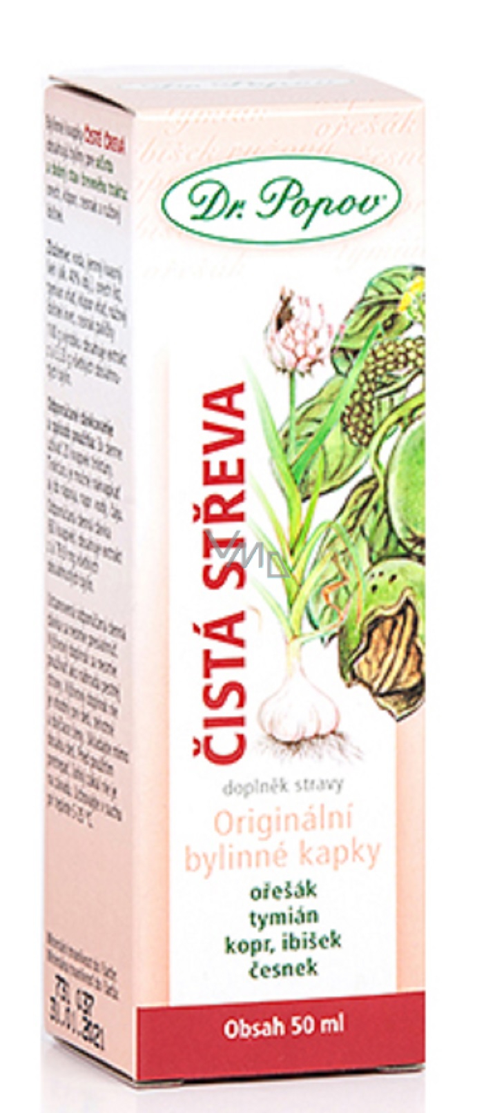 Oryginalne ziołowe krople Dr. Popova Czyste jelita wykorzystują účinků 5 ziół, używanych do oczyszczania układu pokarmowego i jego zdrowego stanu.