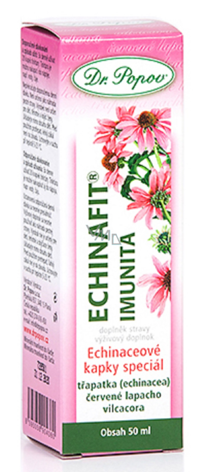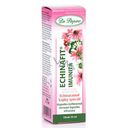 Echinafit® odporność Dr. Popova – krople echinaceowe specjalne to oryginalna tinktura wyprodukowana według receptury Dr. Popova z mieszanki wyselekcjonowanych ziół: echinacei (jeżówki), czerwonego lapacho i vilcacory. Na podstawie rozporządzenia Europejskiego parlamentu i Rady (WE) nr 1924/2006 z dnia 20 grudnia 2006 r. zakazuje się przekazywania informacji o działaniu naszych produktów na ludzki organizm.