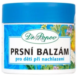 Balsam do masażu na piersi dla dzieci Dr. Popova – odpowiedni do masażu klatki piersiowej, pleców, szyi, karku, czoła i potylicy. Wysoka zawartość naturalnych olejków eterycznych (eukaliptus, mięta, goździk, mentol, kamfora) działa korzystnie przy problemach z oddychaniem i kaszlu oraz wspomaga udrożnienie dróg oddechowych.