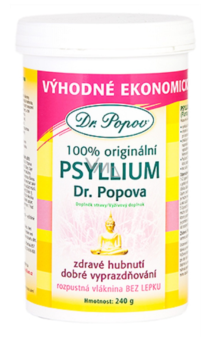 Dr. Popov Psyllium 100% oryginalne, wspiera prawidłowy metabolizm tłuszczów i wywołuje uczucie sytości, błonnik rozpuszczalny 240 g