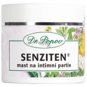 Senziten maść na intymne partie Dr. Popova – delikatna maść na bardzo wrażliwe zewnętrzne intymne partie. Jest odpowiednia również dla wrażliwej skóry. Dla ukojenia wysuszonej, popękanej lub egzema-tycznej skóry. Maść jest bardzo dobrze tolerowana. Nie zawiera żadnych środków konserwujących, barwników ani perfum. Maść jest ponadto wzbogacona o prawdziwy wosk pszczeli, który charakteryzuje się doskonałymi właściwościami nawilżającymi i ochronnymi. W Senzitenie użyliśmy unikalnej kompozycji olejków eterycznych, aby wzajemnie się uzupełniały i wzmocniły ogólny efekt balsamu. Senziten stosujemy w razie potrzeby – np. przed dłuższą podróżą samochodem, itp. Maść nakłada się w cienkiej warstwie na skórę, aby nie zatykać porów.