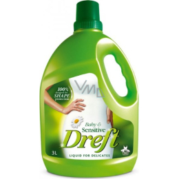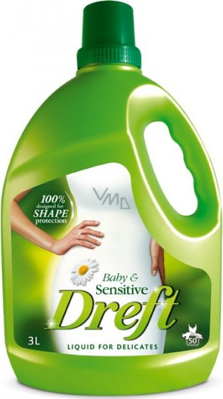 Tekutý Dreft Baby & Sensitive 3l je speciálně navržen tak, aby byl jemný k oděvům a k pokožce a zajišťoval šetrné praní v jakékoli situaci. Je určený pro praní prádla osob s citlivou pokožkou a tak chrání oblečení Vás i Vašich miminek před blednutím barev. Není nutné používat aviváž. Prací prostředek je dermatologicky testován. Pro barevné i bílé prádlo. Vynikající pro praní dětského oblečení, ale také prádla osob s citlivou pokožkou.