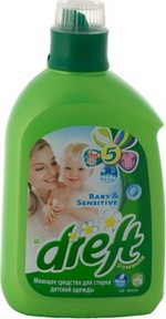 Dreft Baby & Sensitive je jemný k oděvům a k pokožce a zajišťuje šetrné praní v jakékoli situaci. Chrání oblečení vás i vašich miminek před blednutím barev. Není nutné používat aviváž. Tekutý prací prostředek je dermatologicky testován. Je vhodný pro barevné i bílé prádlo.