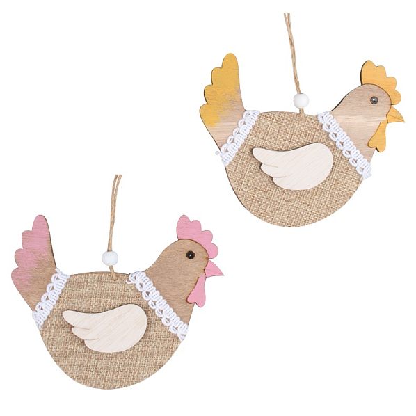 Drewniana kurczak do zawieszenia o rozmiarze 13 cm ożywi váš dom zwłaszcza w okresie Wielkanocy. Kurczak będzie świetnie nadawać się do zawieszenia na gałęziach, lub drzwiach, gdzie świetnie ozdobi wnętrze.