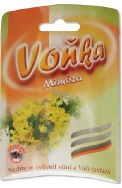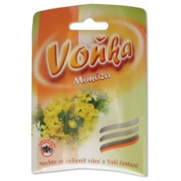 Voňka Mimóza je textilní sáček naplněný parfemovanou směsí, určený jako vůně do skříní, vysavačů, automobilů atd.