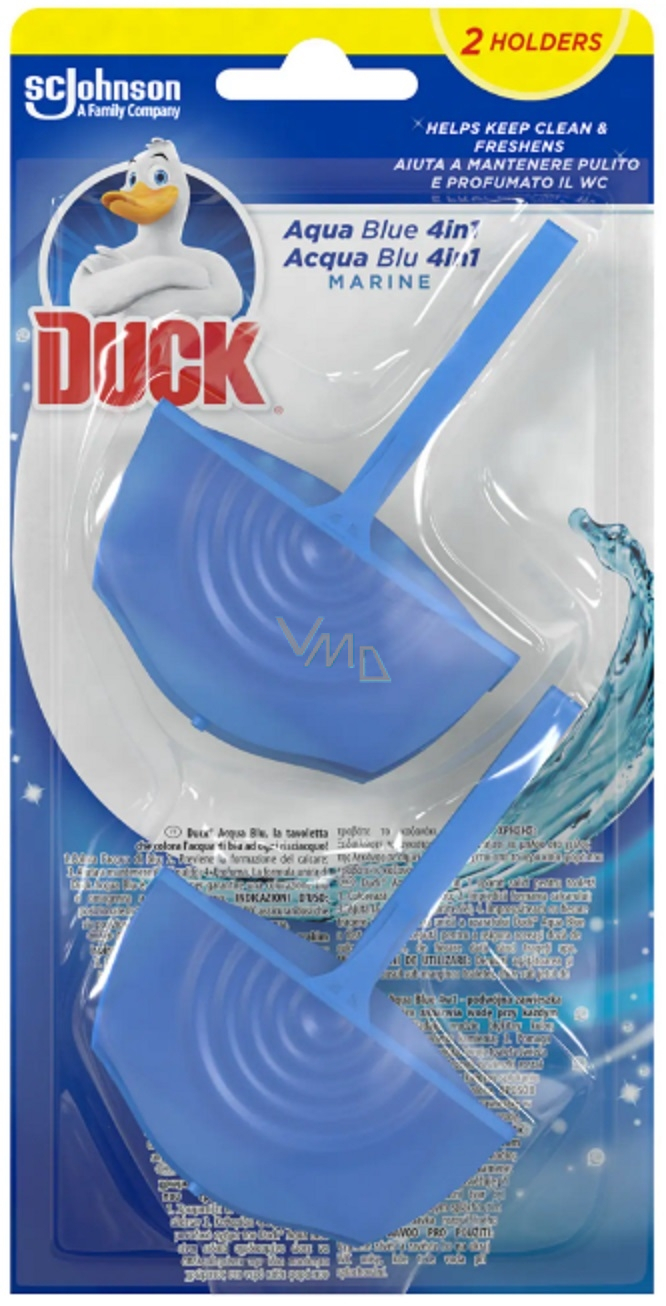 Blok WC Kaczka Aqua Blue 4w1 zapewni czystość i blask po każdym spłukaniu. Specjalna formuła tworzy bogatą pianę i pozostawia długotrwały zapach oceanu. Dezynfekuje, usuwa nieprzyjemne zapachy i zanieczyszczenia. Zapobiega powstawaniu kamienia. Przy każdym spłukaniu zabarwia wodę w toalecie i perfumuje całe pomieszczenie zapachem. Blok WC DUCK Aqua pozostawi Twoją toaletę czystą i pachnącą.