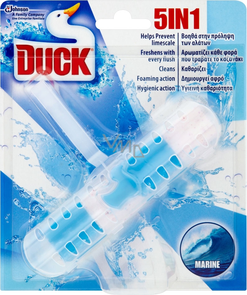 Rozbalte závěs a zavěste ho na okraj WC mísy, kde teče voda při splachování. Závěd Duck lze umístit na okraj každé WC mísy. Pro udržení hygienicky čisté toalety, vyměňte závěs vždy po úplném rozpuštění tablety (po 4 týdnech).