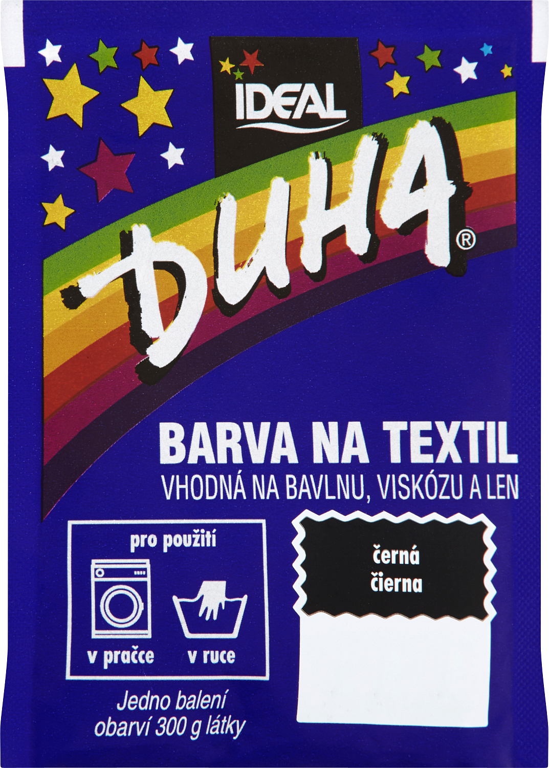 Ideal Duha czarna, barwa do tkanin do bawełny, wiskozy i lnu, na 300 g tkaniny, 15 g