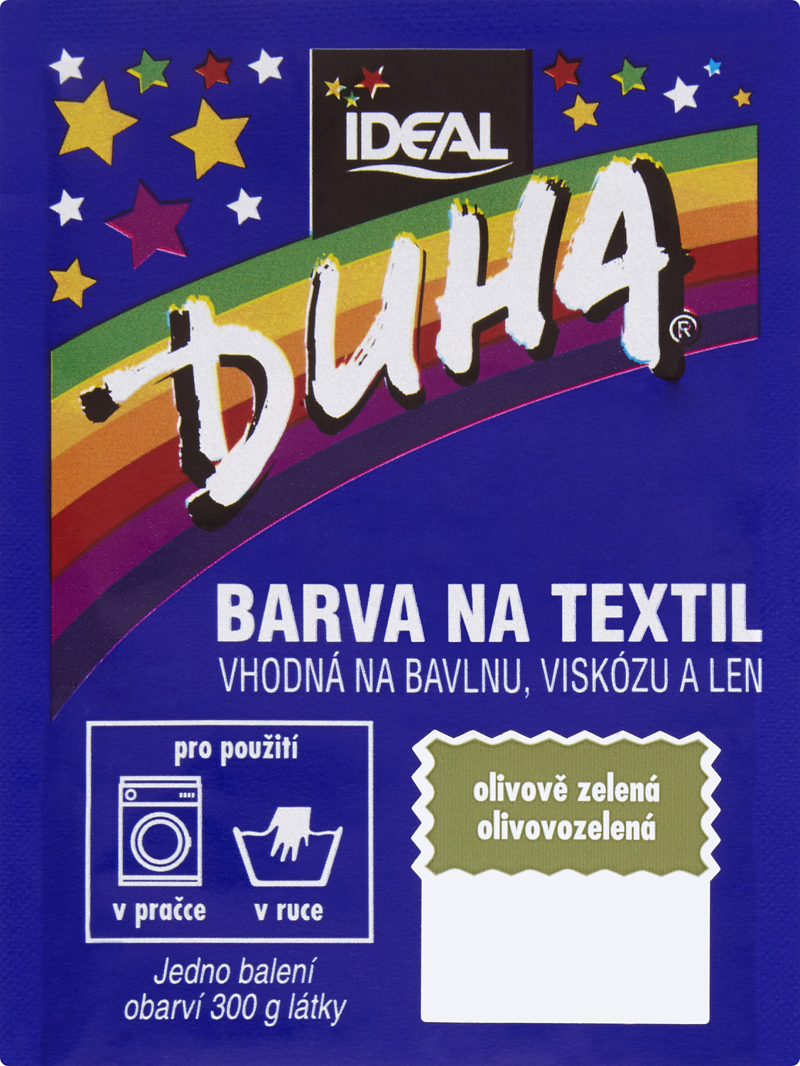 Ideal Duha oliwkowo zielony, farba do tkanin na bawełnę, wiskozę i len, na 300 g tkaniny, 15 g