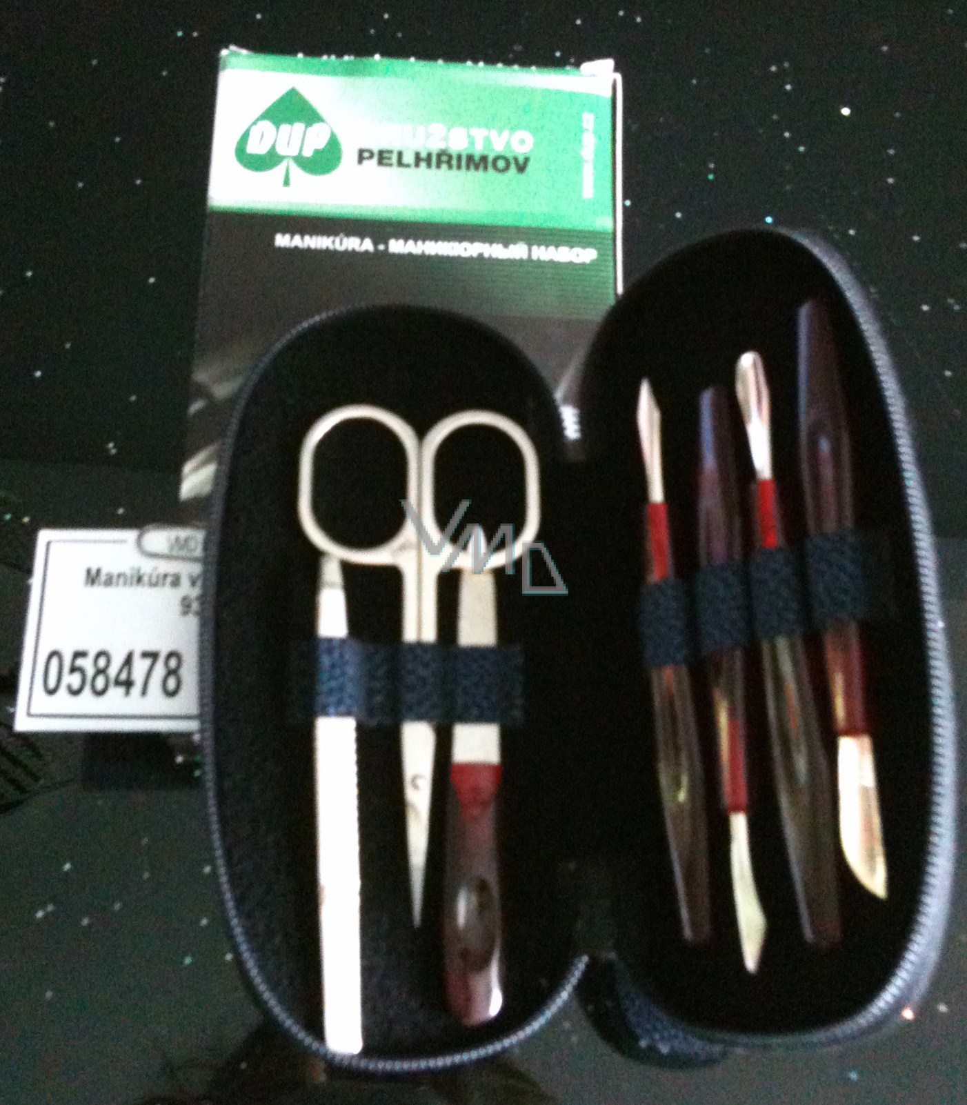 manikúra obsahuje záděrkové nehtové nůžky pilník, pinzetu a čtyři kusy manikúrovacího náčiní r