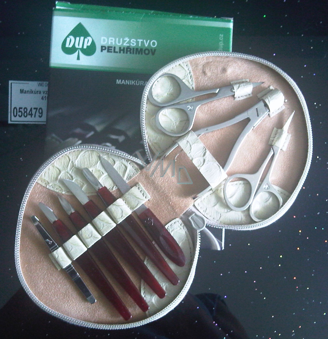 manikúra obsahuje nůžky nehtové záděrkové nůžkovou pinzetu pilník, čtyři kusy manikúrovacího náč