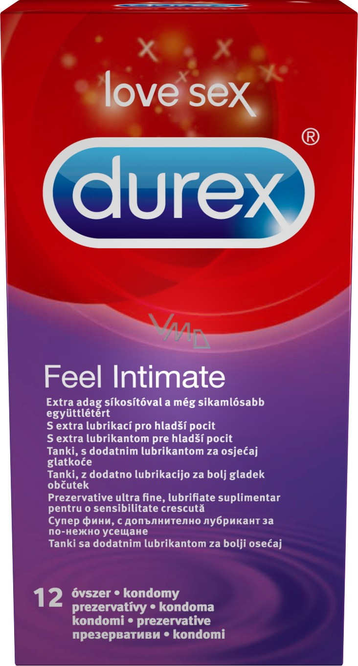 Durex Feel Intimate - dříve pod názvem Elite. Tenký, s extra lubrikací pro hladší pocit. Easy-on tvar, zakončený rezervoárem, pro pohodlí a dokonalou přilnavost. Průhledné kondomy z přírodního kaučukového latexu.
